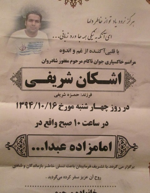 گفتنی است: مراسم تشییع جنازه مرحوم شادروان اشکان شریفی ساعت 10 صبح فردا چهارشنبه در امامزاده عبدالله (ع) گرگان برگزار می شود.