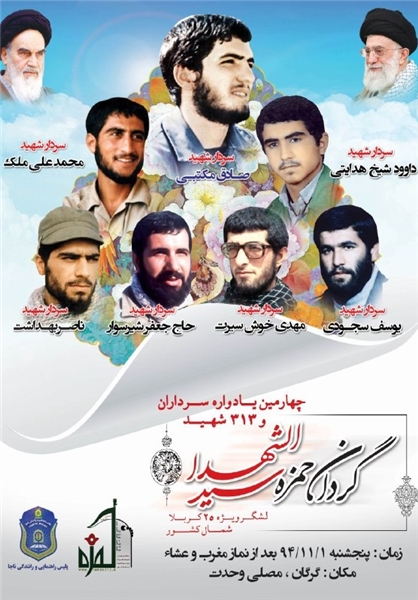 البرز گلستان /چهارمین یادواره شهدای گردان حمزه سیدالشهدا از لشکر ویژه 25 کربلا ، یکم بهمن ماه ، با حضور رزمندگان وایثارگران و عاشقان ابا عبداله الحسین (ع)از استان های گلستان و مازندران و گیلان برگزار می شود.