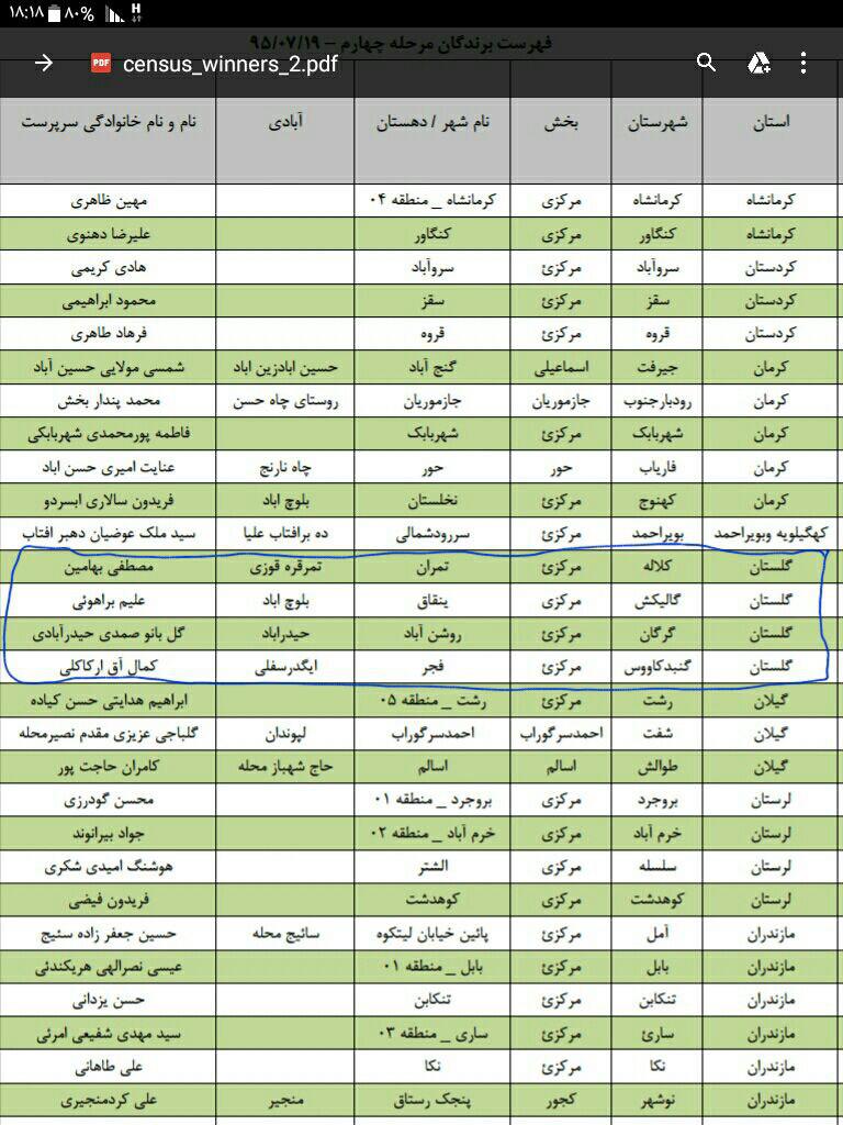 اعلام اسامی برندگان قرعه کشی مرحله چهارم سرشماری اینترنتی استان گلستان