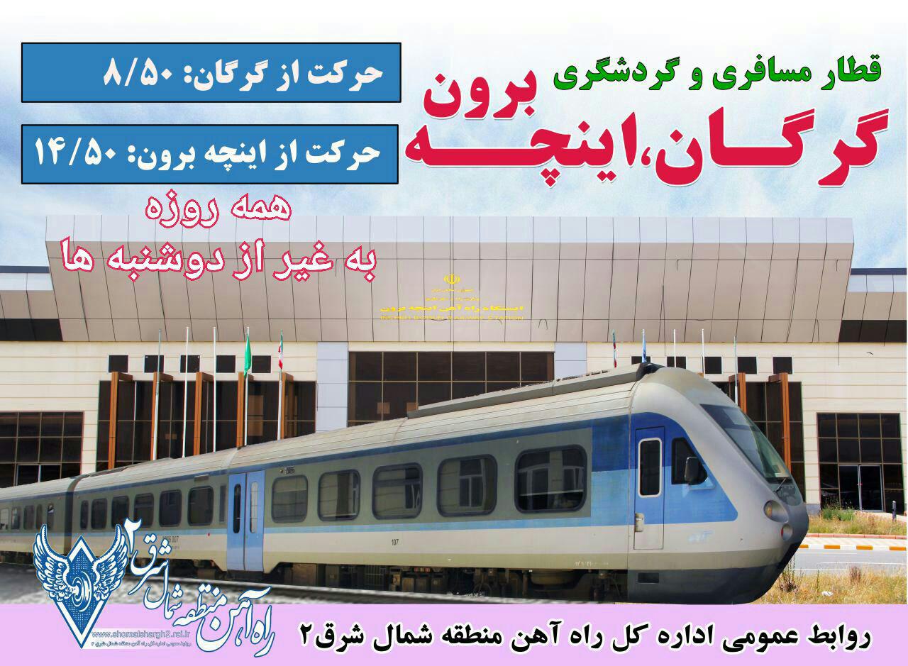 حرکت از گرگان: 8:50 حرکت از اینچه برون: 14:50