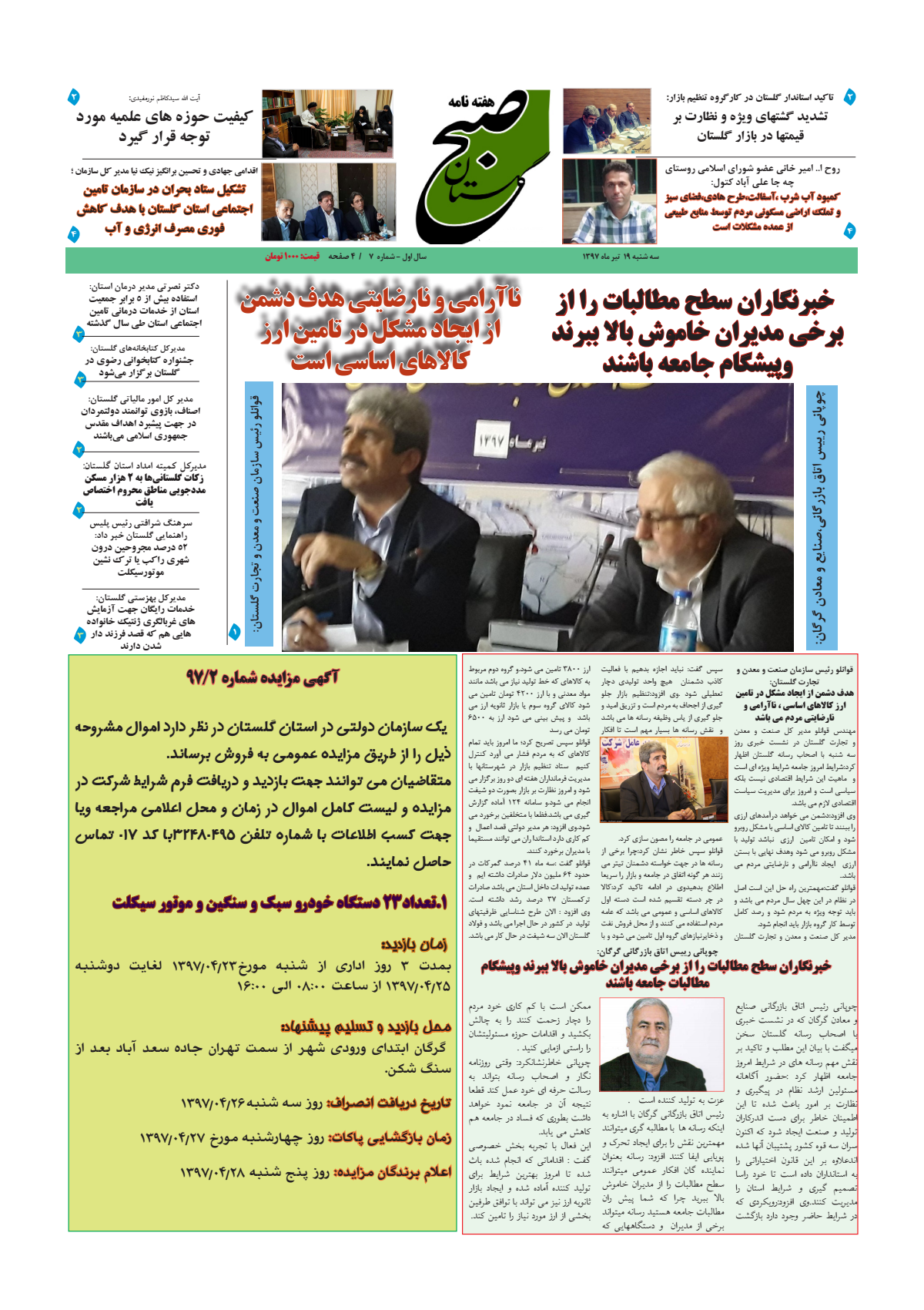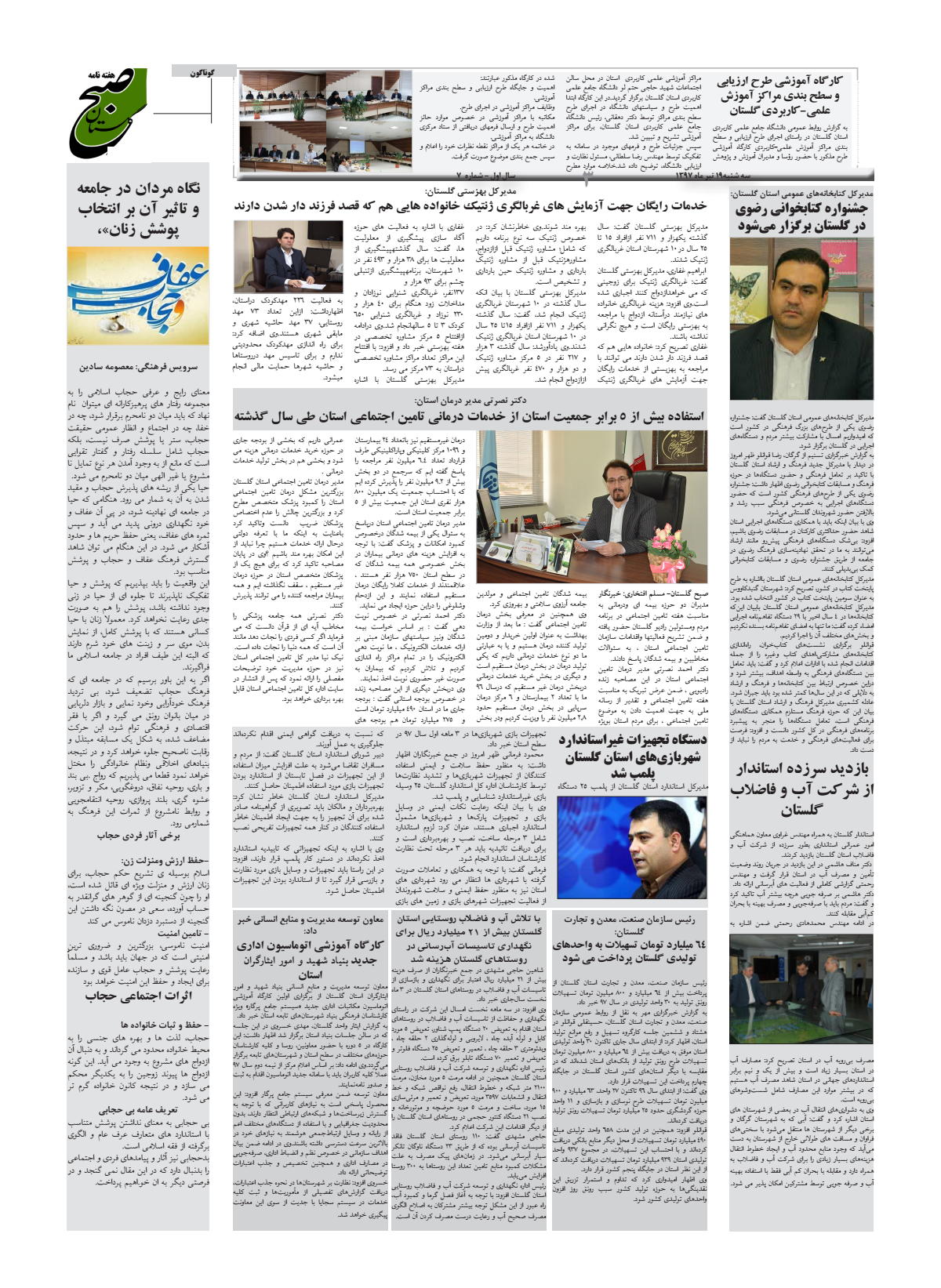 البرز گلستان هفتمین شماره هفته نامه صبح گلستان در استان گلستان انتشار یافت
