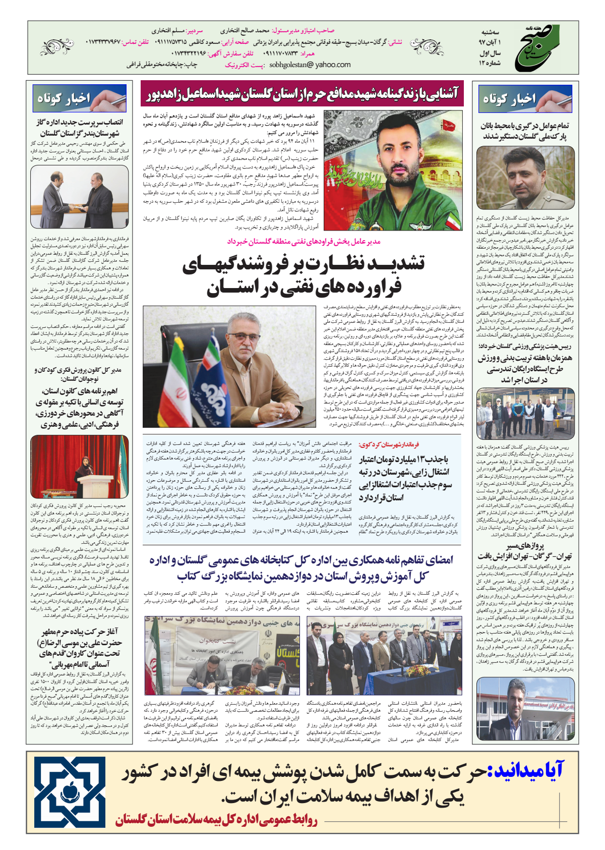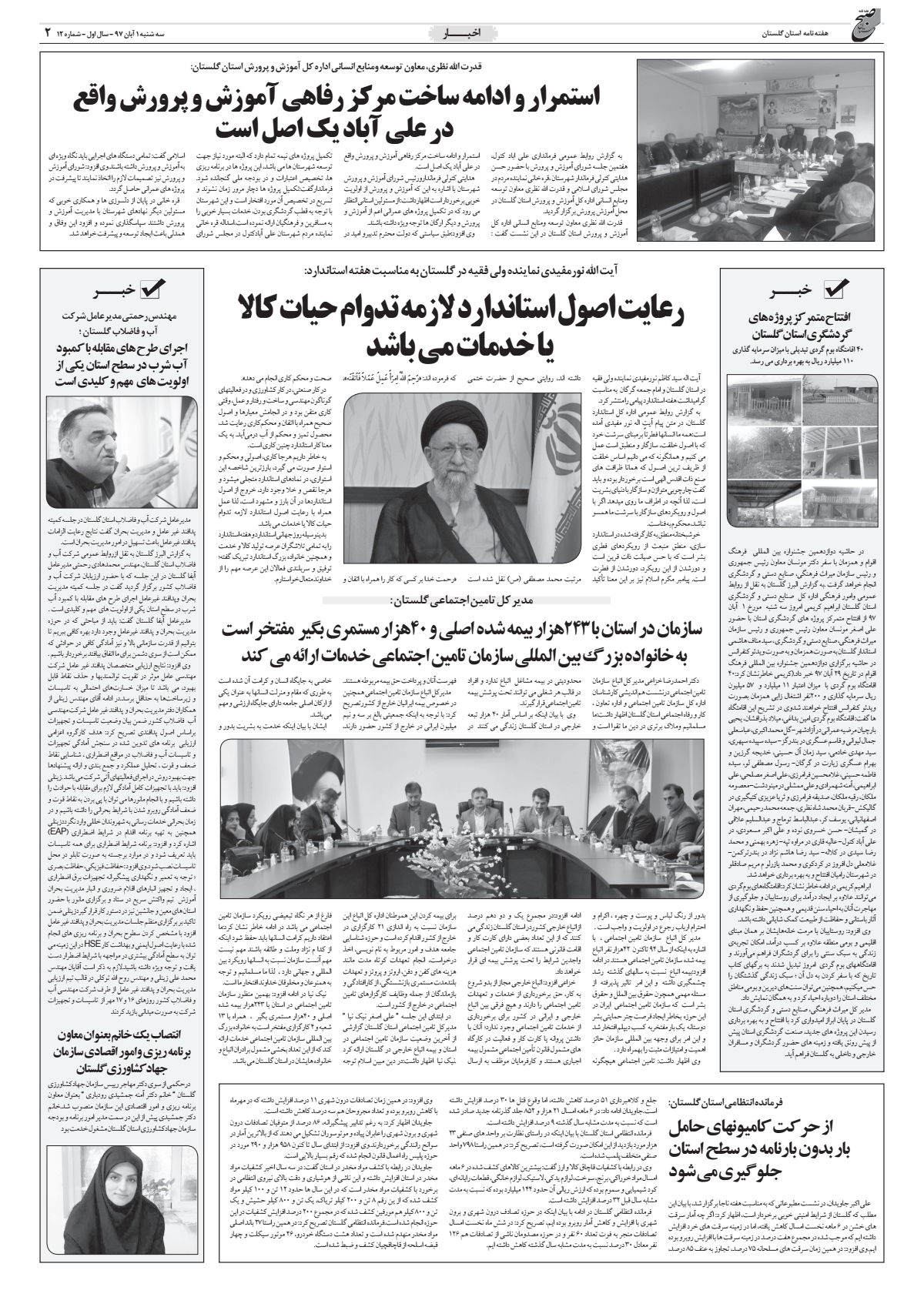 به گزارش البرز گلستان /دواردهمین شماره هفته نامه صبح گلستان انتشار یافت. )