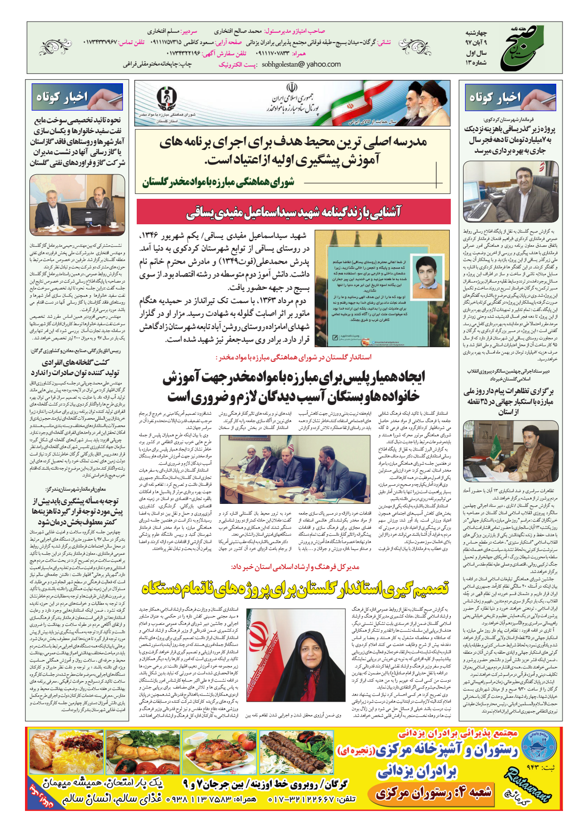به گزارش البرز گلستان /سیزدهمین شماره هفته نامه صبح گلستان انتشار یافت.