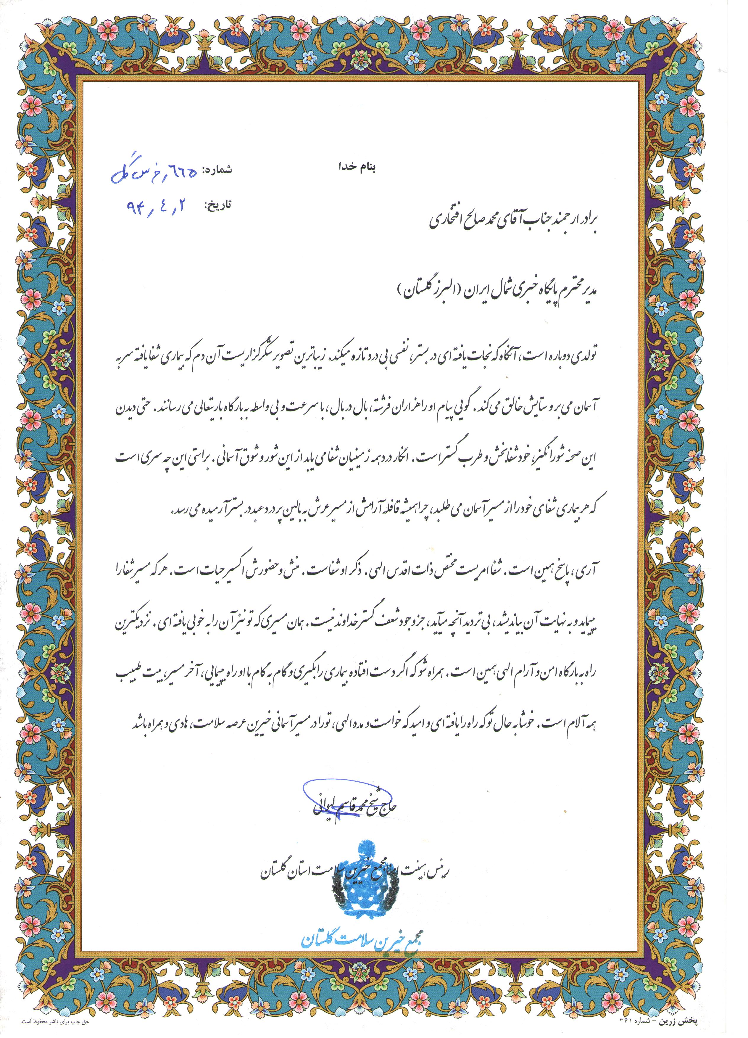 و این افتخاری برای این پایگاه خبری با کاربران بزرگوارش که از این نهاد مقدس حمایت فرهنگی کند و انشالله مرضی حق تعالی باشد.